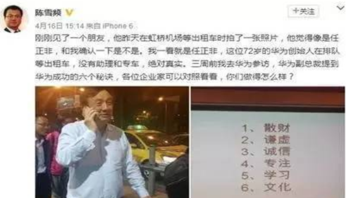 圖2 任正非一個人深夜在上海虹橋機場等出租車